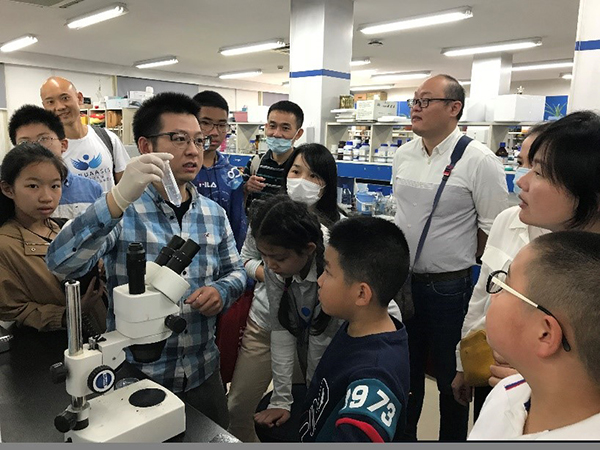 在接下来的分班班会中,学院校友联谊会为各位校友精心准备了带有生命科学学院LOGO的T恤衫、带有专业特色的“细菌与人”扑克牌以及《生物科学杂志》等精美纪念品。学院党委书记党远鸿代表学院向60级校友介绍了学院近年来的概况及取得的成绩,他表示校友是学校最宝贵的资源,欢迎校友们常回家看看。班会后,各参会校友及其家属在志愿者的引导下参观了脑功能基因组学研究所,志愿者们耐心地为校友和小朋友们科普了神经生物实验流程,演示了研究所里的新设备,展示了母校生物科学研究者积极进取、不断攻艰的精神面貌,激发小朋友们对科学的想象和兴趣。
