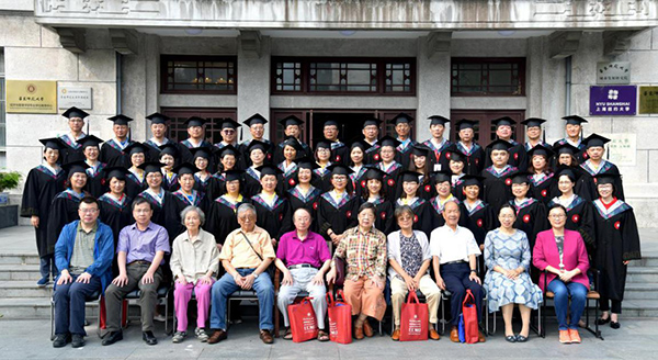 2019年10月5日,华东师范大学生物学系85级同学从海外和全国各地返回母校,共同庆祝毕业三十周年。校友们特意穿上学士服,来到了生物馆前与老教授们一起合影留念。